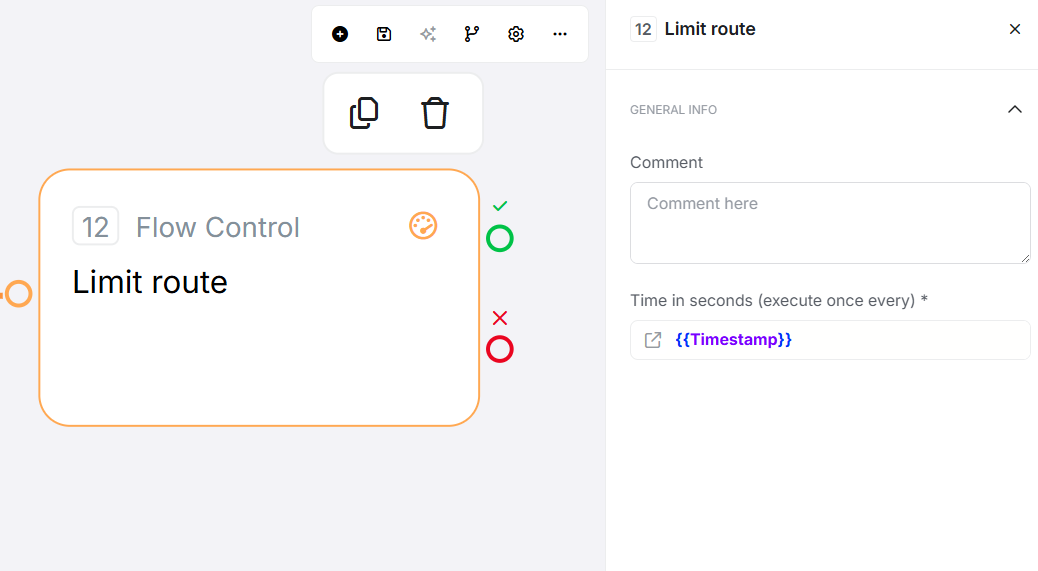 Limit Route controls flow execution rate by allowing execution only once per specified time window. It uses distributed locking to prevent re-execution until the time window expires, making it ideal for rate limiting, preventing duplicates, and throttling operations.