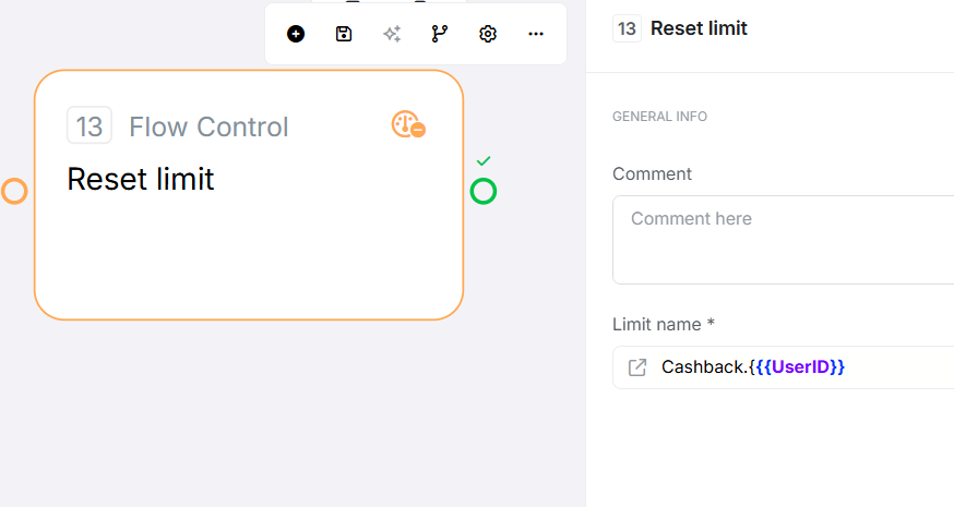 Common Use Cases 1. Admin Override for User Cooldown Scenario: Users claim reward once per day, admin can resetLimit Name: reward_claimed_{{ UserID }} Flow: Admin verification → Reset → Return Cooldown resetResult: User can claim again immediately2. Reset After Successful Completion Scenario: API batch locked for 5 minutes, reset after completionLimit Name: api_batch_lockFlow: Process batch → Reset lock on successResult: Next batch can start immediately (not waiting remaining time)3. Cancel Operation Clears Lock Scenario: User starts operation, then cancelsLimit Name: operation_{{ UserID }} Flow: Cancel endpoint → Reset → Return CancelledResult: User can start again immediately4. Premium User Bypass Scenario: Free users rate limited, premium users bypassLimit Name: export_{{ UserID }} Flow: Limit Route Fail → Check premium status → Reset → ContinueResult: Premium users never blocked by rate limits5. Conditional Reset After Error Scenario: API rate limit error, retry after clearing lockLimit Name: api_lockFlow: Error 429 → Wait 60s → Reset → RetryResult: Smart retry after rate limit errors6. Scheduled Reset (Nightly Cleanup) Scenario: Reset all user limits at midnightFlow: Scheduler trigger → Loop users → Reset daily_limit_{{ UserID }} Result: Fresh start for new dayKey Behaviors Feature Behavior Exact Name Match Required Must exactly match Limit Route stage's name (case-sensitive) Idempotent Operation ✓ Safe to call multiple times; no error if limit doesn't exist No Confirmation No return value indicating whether lock was actually removed No Undo Once reset, the limit is cleared; cannot restore a cleared limit Immediate Effect Next Limit Route execution will Pass and create new lock Workspace Scoped Can only reset limits within same workspace
