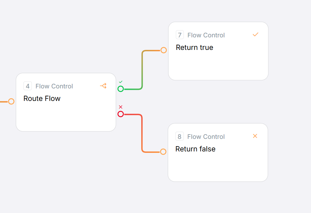 - Route Flow: Conditionally choose Return true vs Return false
