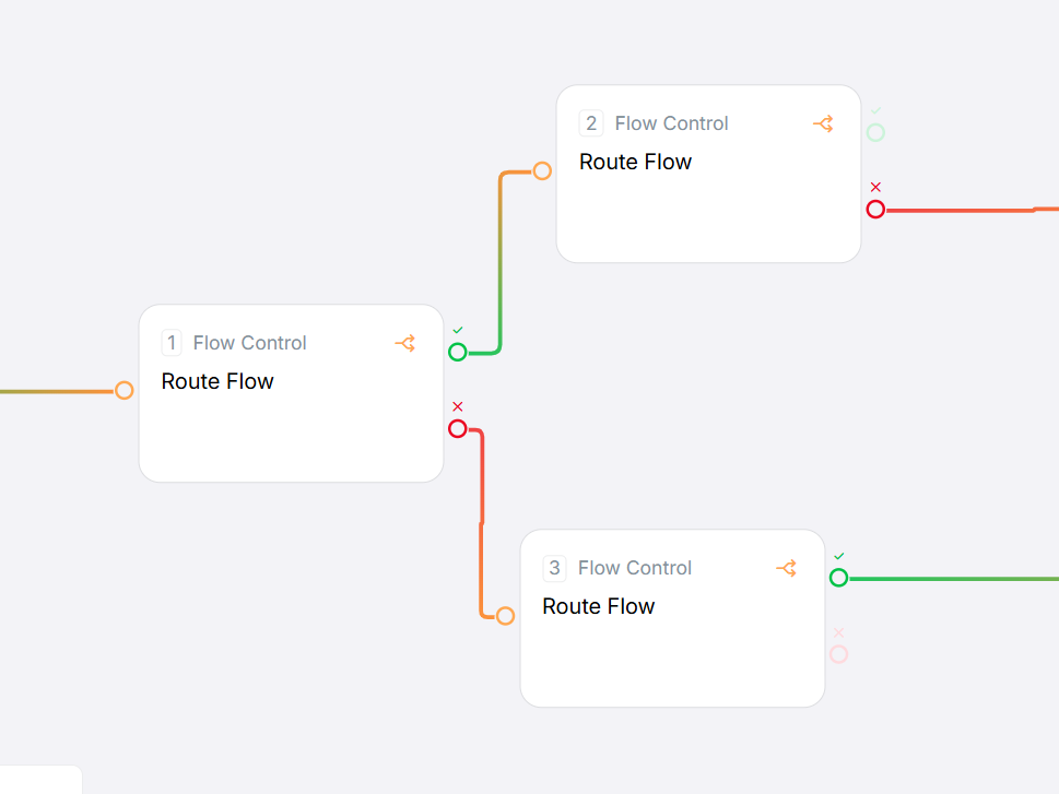 The Route Flow stage evaluates conditions and directs your workflow down different paths based on whether the conditions are true or false. Use it to make decisions, implement business logic, validate data, and create branching workflows.