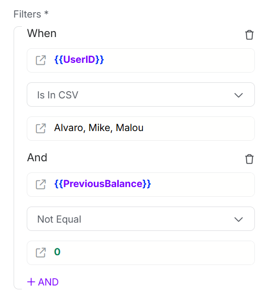 Filter Groups: Nest conditions for complex logic like (A AND B) OR (C AND D)